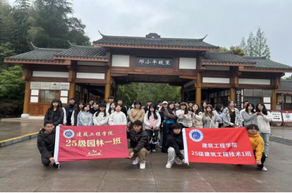 3月28日上午,建筑工程学院2025级建筑工程技术1班、园林技术1班学子走进邓小平故里,开展“传承伟人精神·共创优秀班集体”红色实践活动。本次活动以实地研学探访的形式,引导青年学子沉浸式感悟伟人精神、厚植红色情怀、传承精神血脉,同时以红色文化赋能班级建设,凝聚班级奋进合力,切实将红色教育融入学生日常思政教育全过程。